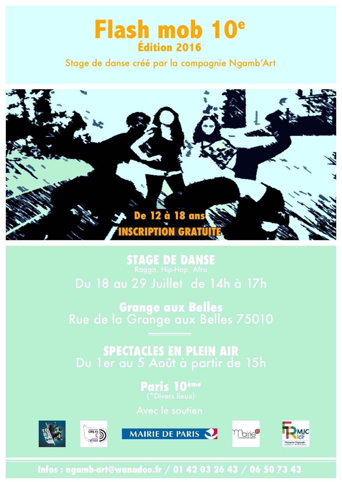 « FLASH MOB 10e » est un projet qui a pour but de favoriser la mixité sociale et de lutter contre la violence à travers la pratique artistique. Le projet a pour vocation d’aider les jeunes à exprimer leur vécu avec la danse grâce au partage d’expériences personnelles et à l’investissement d’espaces de citoyenneté.