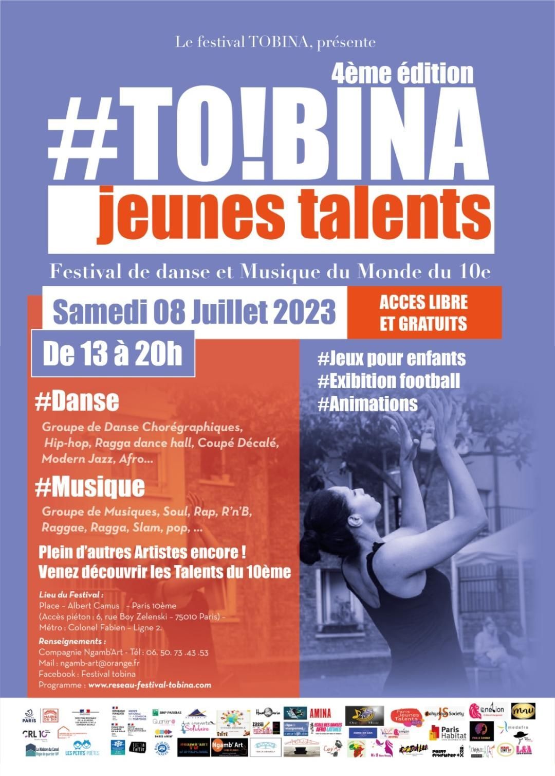 Ayant lieu tous les deux ans au mois de Juillet, le festival TOBINA qui se déroule sur trois jours accueille plusieurs artistes confirmés ou non, bénéficie du soutien de plusieurs organismes ( collectivités locales, RATP…) et constitue grâce aussi au charmant public qui se déplace en masse, un moment fort en contribuant au dynamisme socio culturel du 10e et des environs.